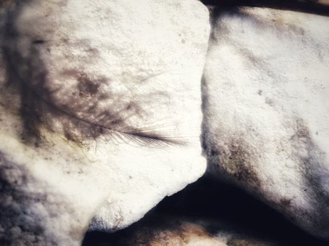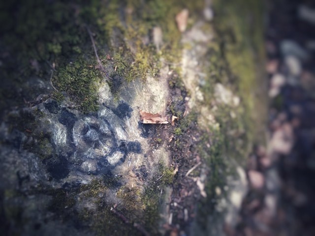 Yesterday I become preoccupied with the visual caught up in how to make the most perfect circle with pieces that are naturally odd. On reflection I realise that I got caught up in setting an unrealistic goal! I had started out by noticing sticks that looked like bones, feathers and white limestone rocks. Someone had had a fire in the woods which made me thoughtful about the impact we have but also the beauty of the charred sticks and the pile of ash. My train of thought was something like not fearing letting go and working with what I saw as endings. After an hour of tinkering and rearranging I gave up frustrated that I had not achieved my goal. Prior to coming out I had been reading a book on the work of environmental artist Chris Drury; I wanted to recreate something akin to his level of perfection! After giving up I found myself making marks with the burnt ends of sticks and what happened next was deeply satisfying. I found myself making marks on stones and logs and thinking how having an ankle injury running had forced me to slow right down and actually (after a lot of frustration again) there was a small glint of gratitude… On a personal level I was less troubled by the impact I was having than my previous design; it was easy and relaxing! These marks will be washed off with the next rain. Gratitude became my much needed intention!