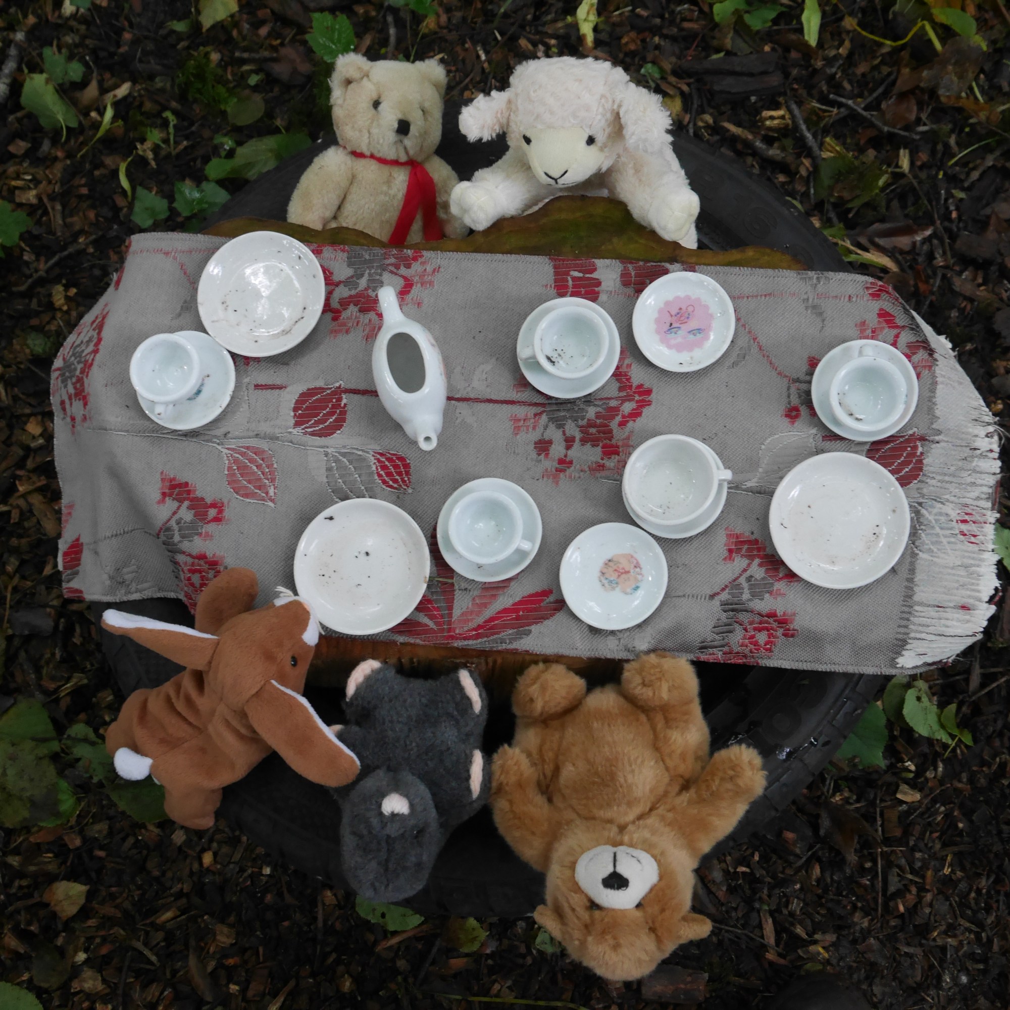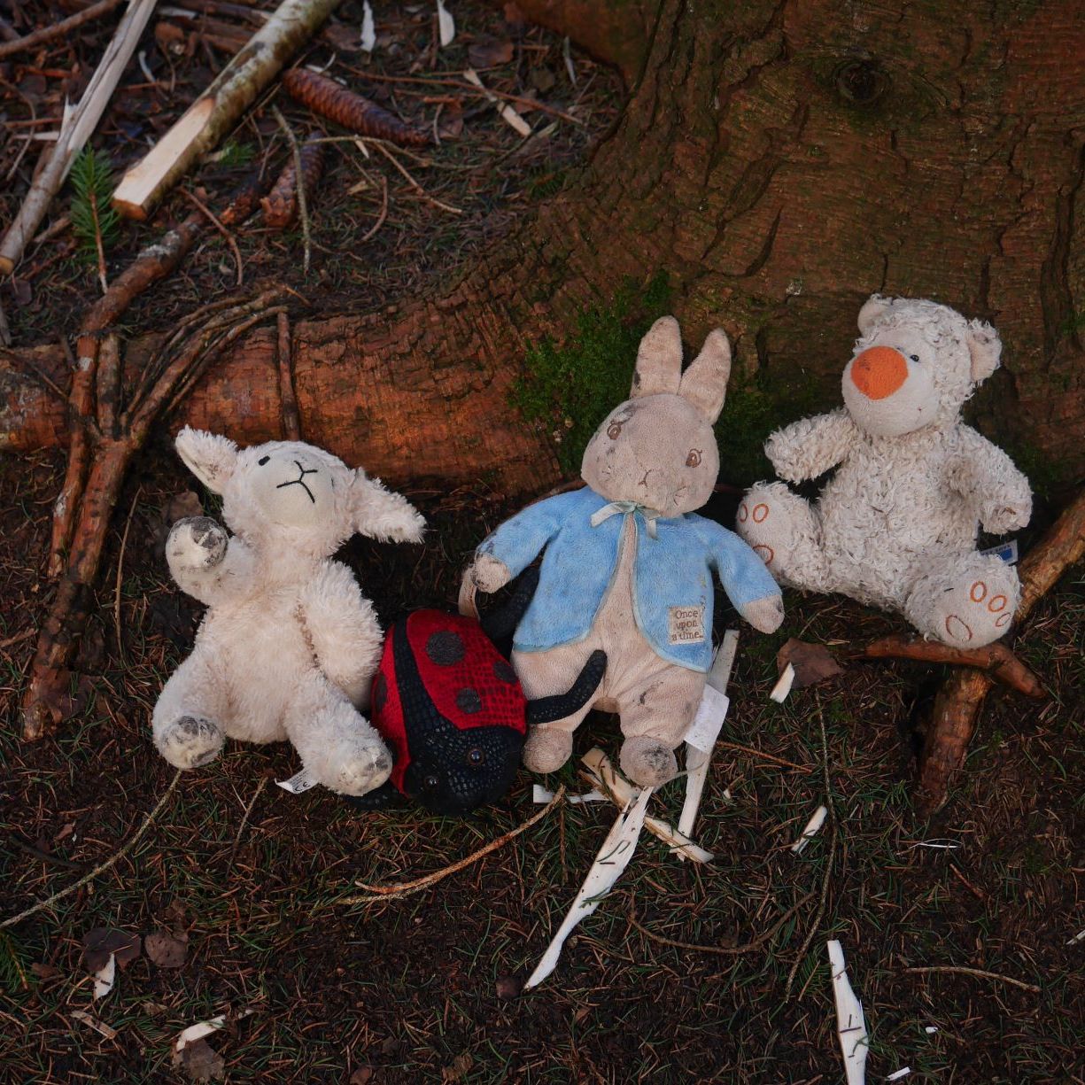 In our parent and toddler groups we have a whole range of toys you might normally find indoors – all sorts of teddies, big dinosaurs, cars, construction vehicles. Some people would say that being outdoors should be enough for children, that they can use their creativity and imagination to make their own toys out of sticks and whatever else they might find. Yes, that is true. But for me, the most important and beneficial thing is to be outdoors and engaging with nature, and if we use some props to make it easier for us or to extend the time we spent outside, then that’s absolutely fine.